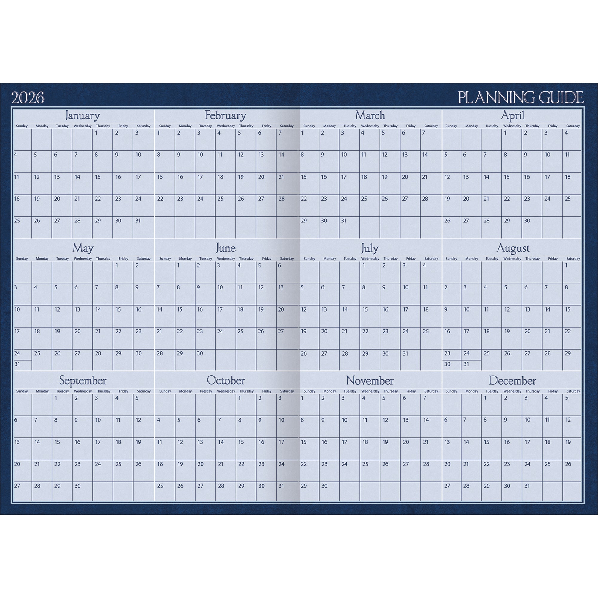 - 13-month format, January 2026 - January 2027