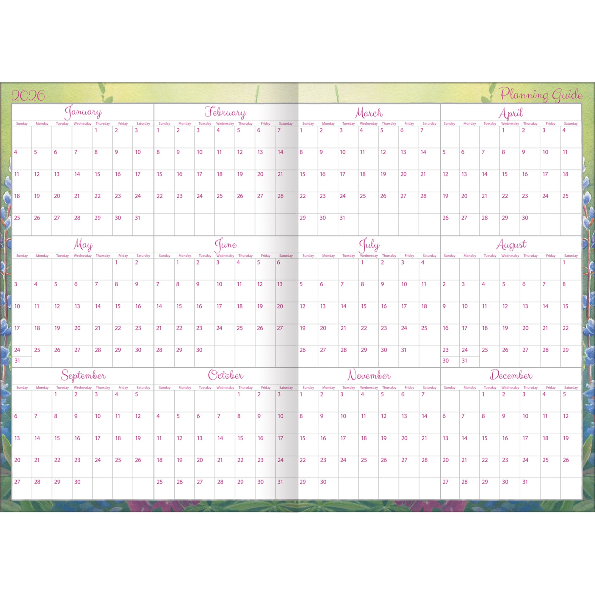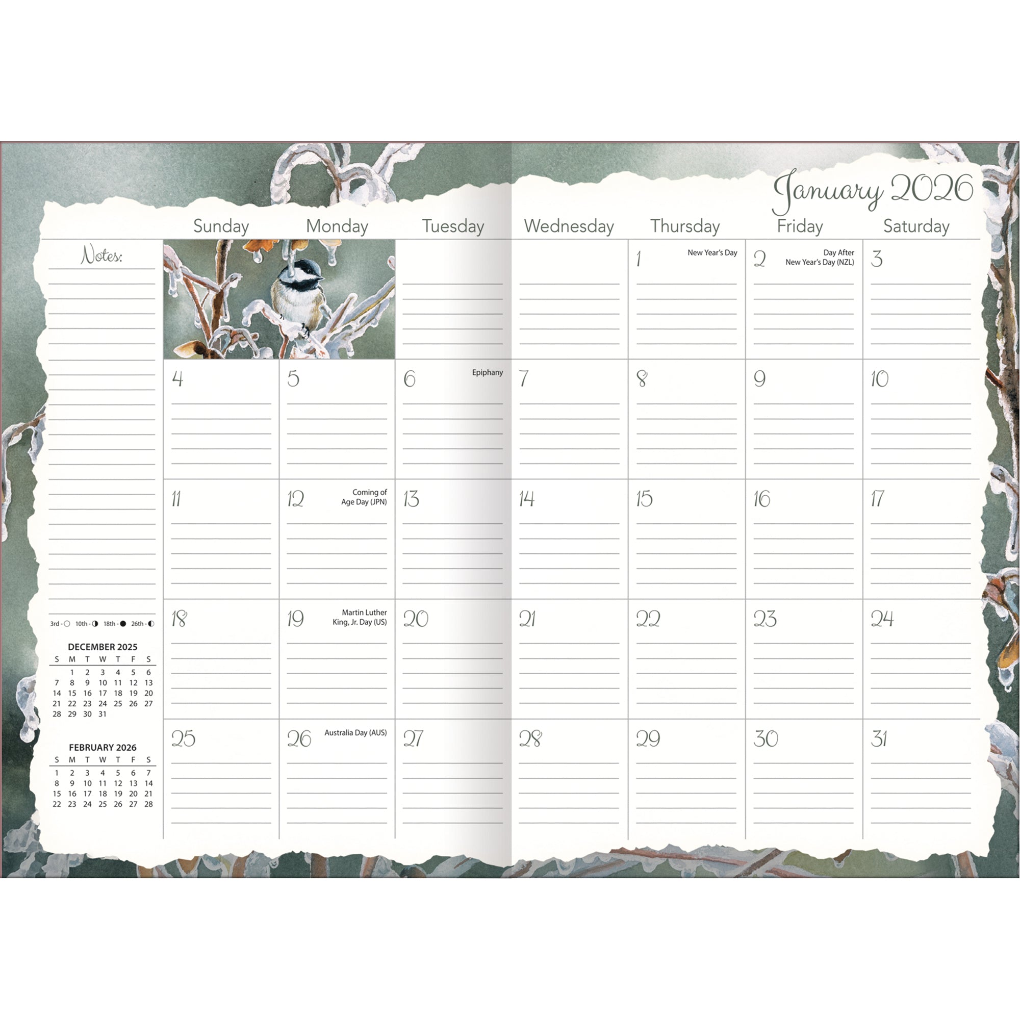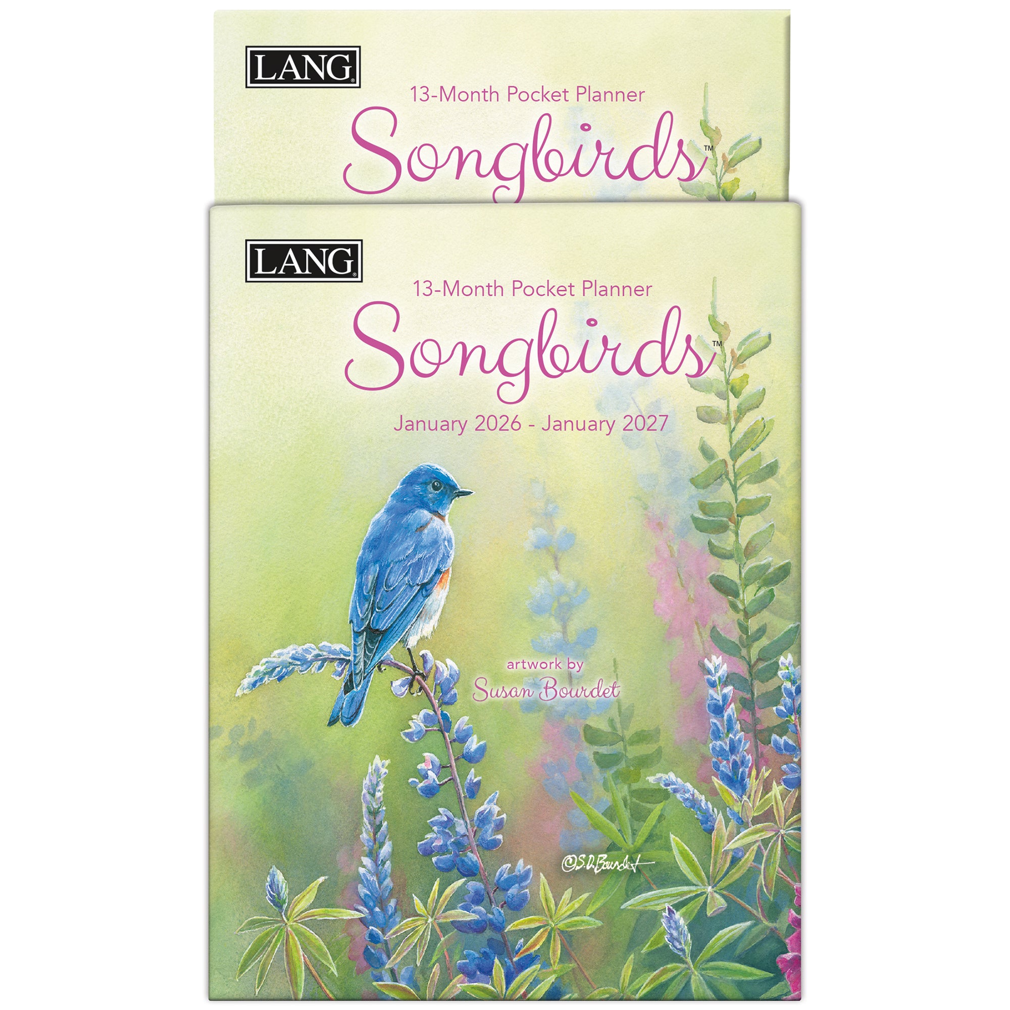 The 2026 Songbirds Monthly Pocket Planner features monthly artwork of cheerful, colorful birds by Susan Bourdet in a 13-month calendar format with ample room for notes and engagements. LANG Monthly Pocket Planners also feature a 2026 Planning Guide and linen embossed paper cover and pocket sleeve.