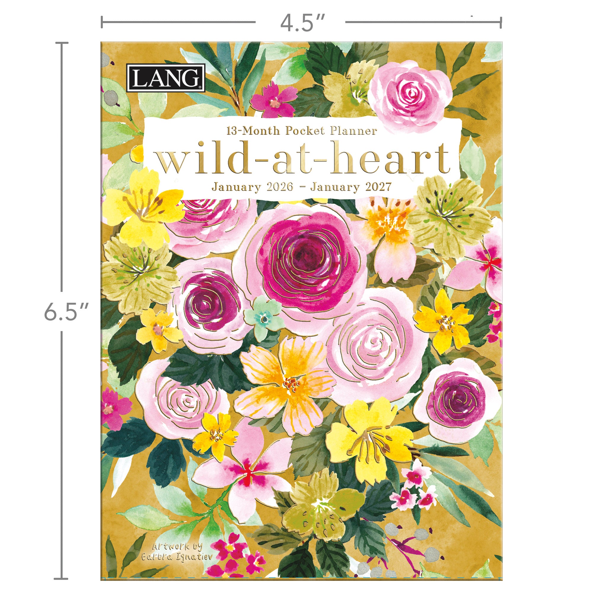 The Wild at Heart 2026 Monthly Pocket Planner features Barbra Ignatiev's colorful artwork in a 13-month calendar format with ample room for notes and engagements. LANG Monthly Pocket Planners also feature a 2026 Planning Guide and linen embossed paper cover and pocket sleeve.